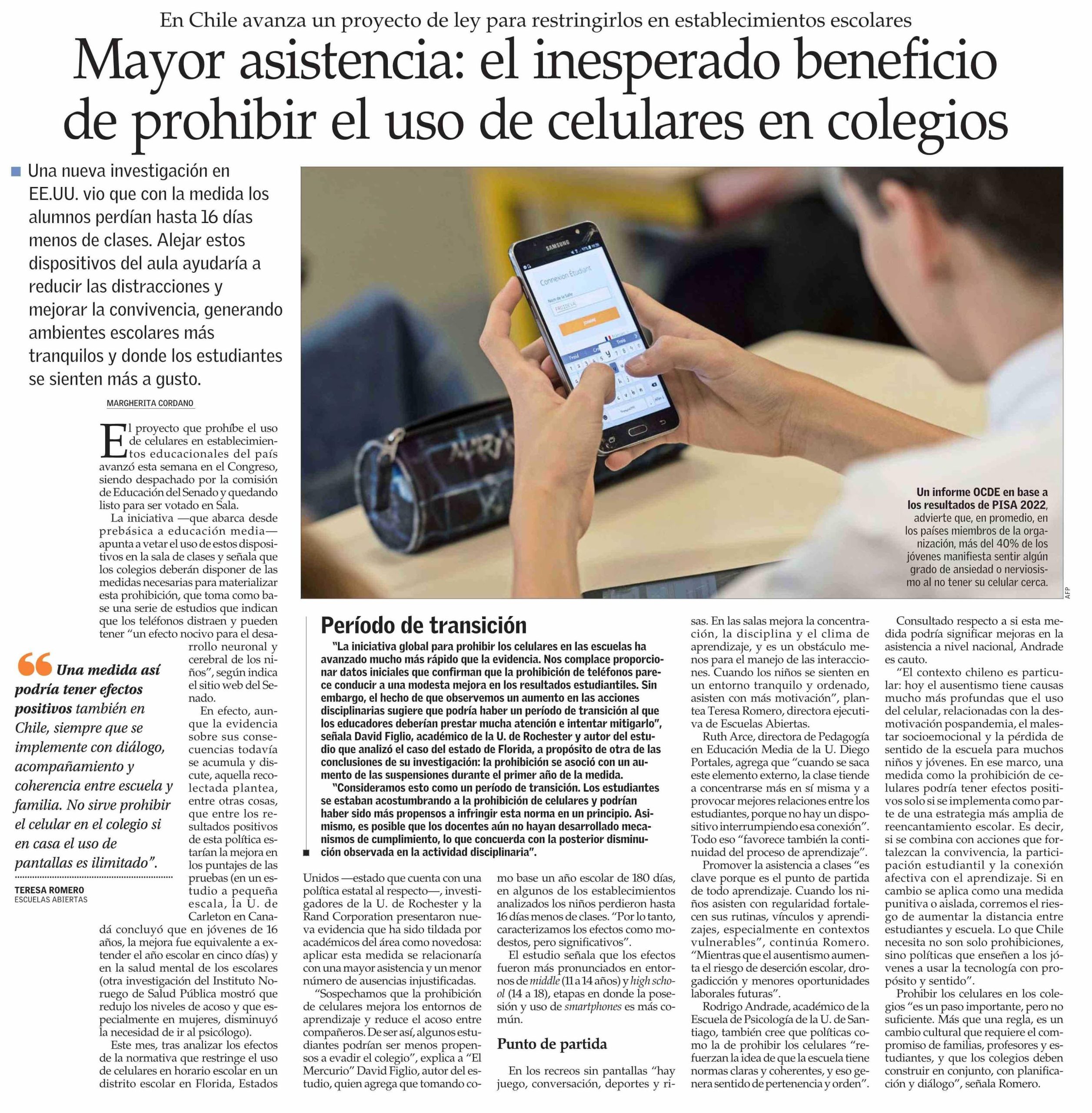 OPINIÓN 🗞️| Compartimos participación de Ruth Arce, directora de Pedagogía Media  UDP, en nota realizada por El Mercurio sobre los beneficios de prohibir el uso de celulares en los colegios ✔️
