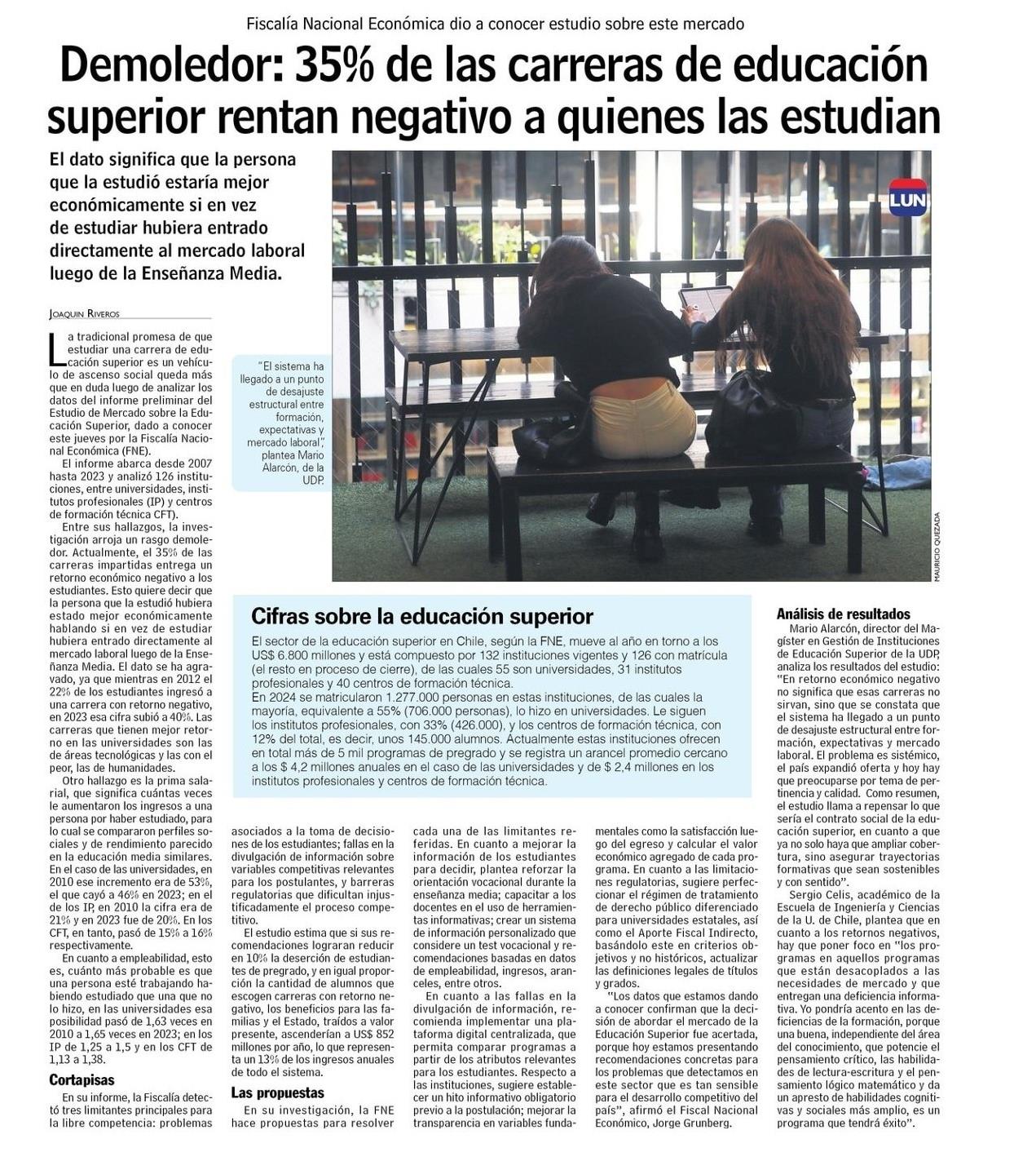 OPINIÓN 🗞️| Compartimos participación de Mario Alarcón, director del Magíster en Gestión de Instituciones de Educación Superior UDP, en nota realizada por @lun sobre los resultados arrojados en Estudio de Mercado sobre la Educación Superior ✔️