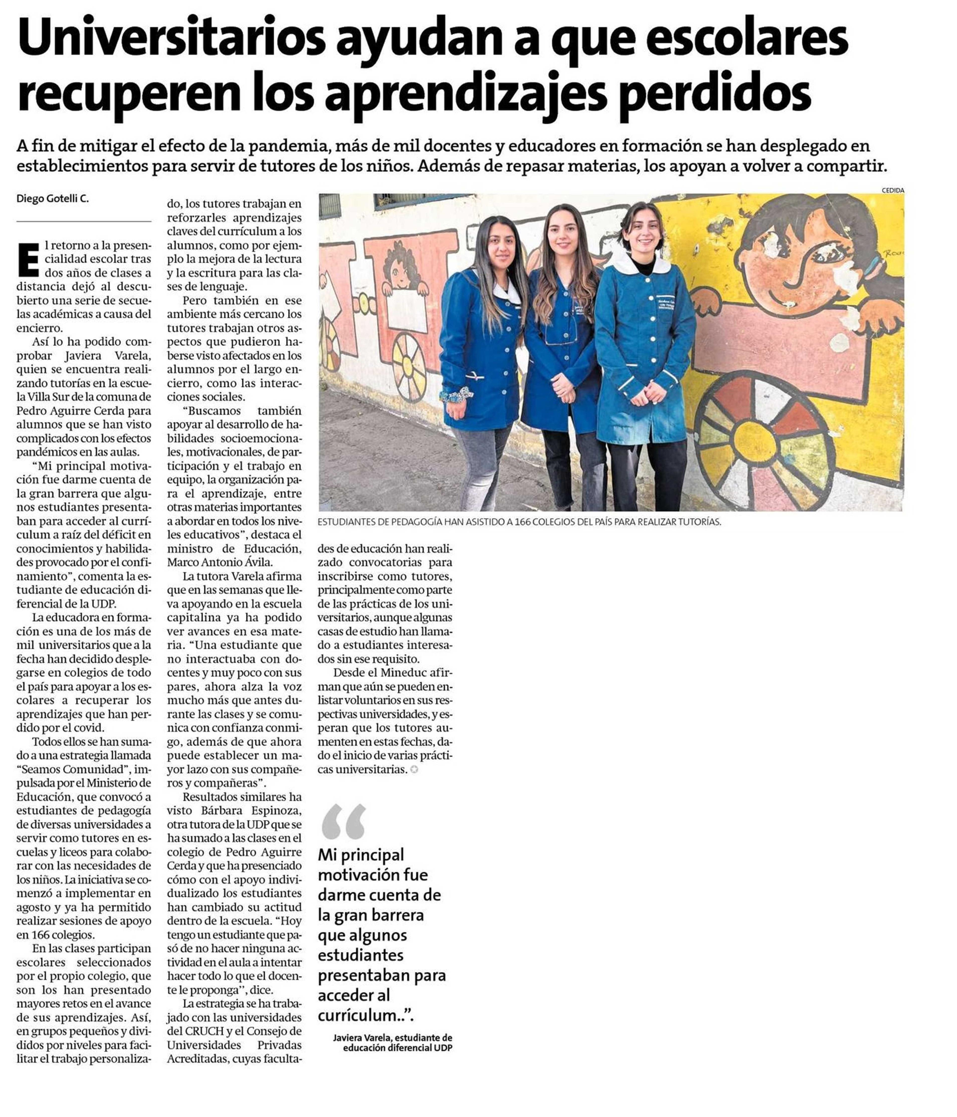 Universitarios ayudan a que escolares recuperen los aprendizajes perdidos, comentan Javiera Varela y Bárbara Espinoza